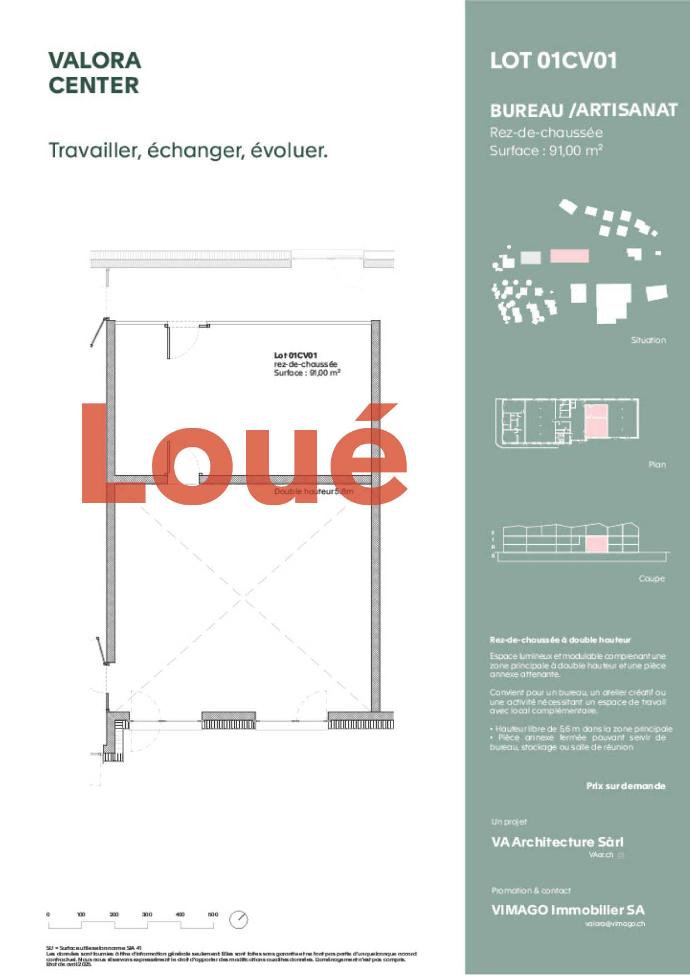 Rez-de-chaussée à double hauteur - 91,0 m²